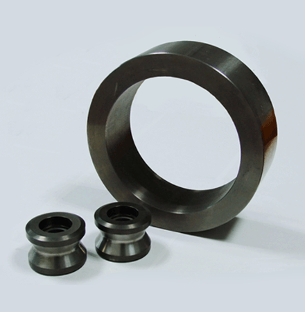 Productivity improves with hardmetal roll at the time of sleeve, bloom, and billet rolling. With hardmetal guide roll of excellent abrasion resistance, roll helps with the accurate leading-in while manufacturing timber and iron. It also prolongs the life, too. At present, dies produces timber W103~W120, and H103~H108. It is also possible to make the external diameter 350 with dies for common use. Other than those mentioned, HX and SQ are also produced.