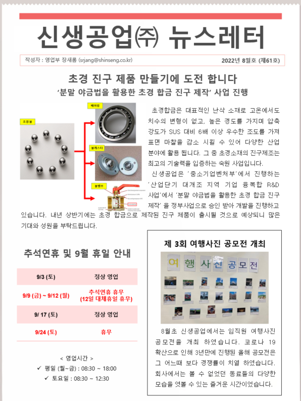 신생공업(주) 뉴스레터 8월호(제61호)