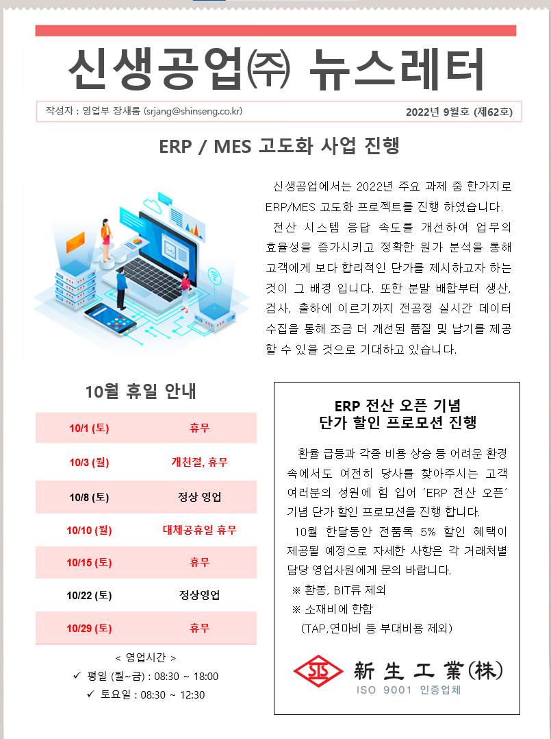 신생공업(주) 뉴스레터 9월호(제62호)