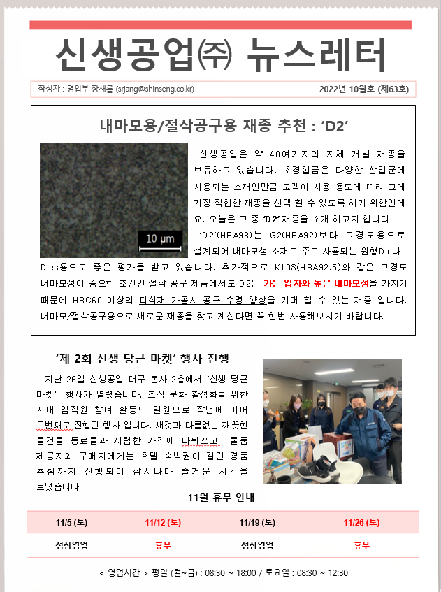 신생공업(주) 뉴스레터 10월호(제63호)