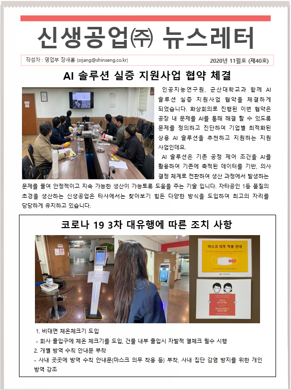 신생공업(주) 뉴스레터 11월호(제40호)