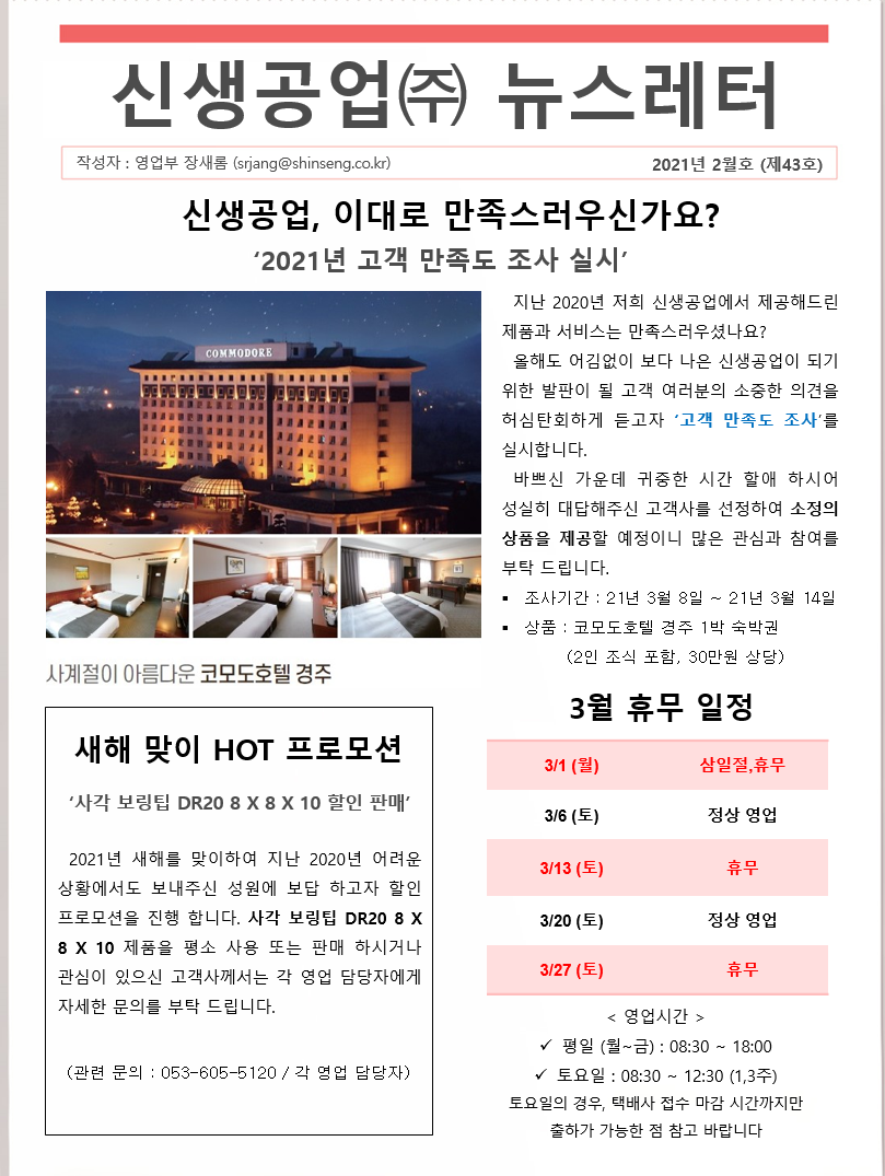 신생공업(주) 뉴스레터 2월호(제43호)