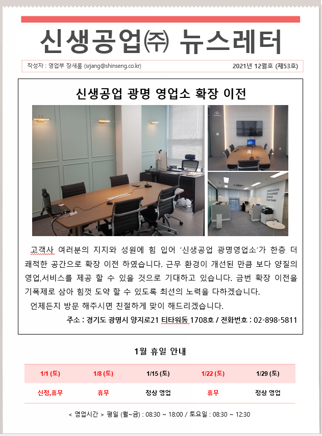 신생공업(주) 뉴스레터 12월호(제53호)