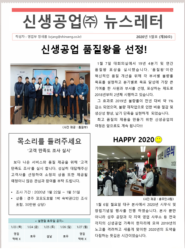 신생공업(주) 뉴스레터 1월호(제30호)