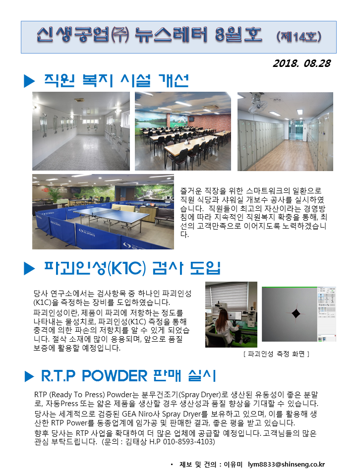 신생공업(주) 뉴스레터 8월호 (14호)
