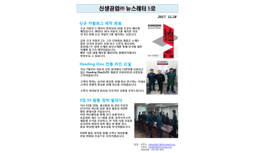 신생공업(주) 뉴스레터 5호(2017.11…