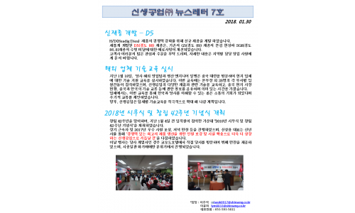 신생공업(주) 뉴스레터 7호(2018.01…