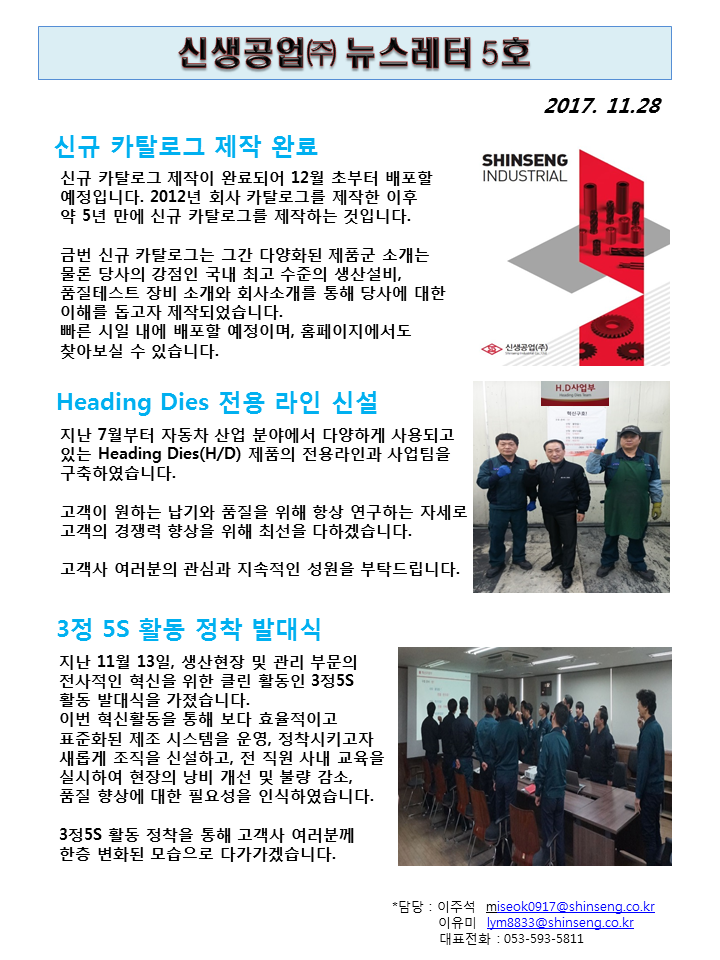 신생공업(주) 뉴스레터 5호(2017.11.28)