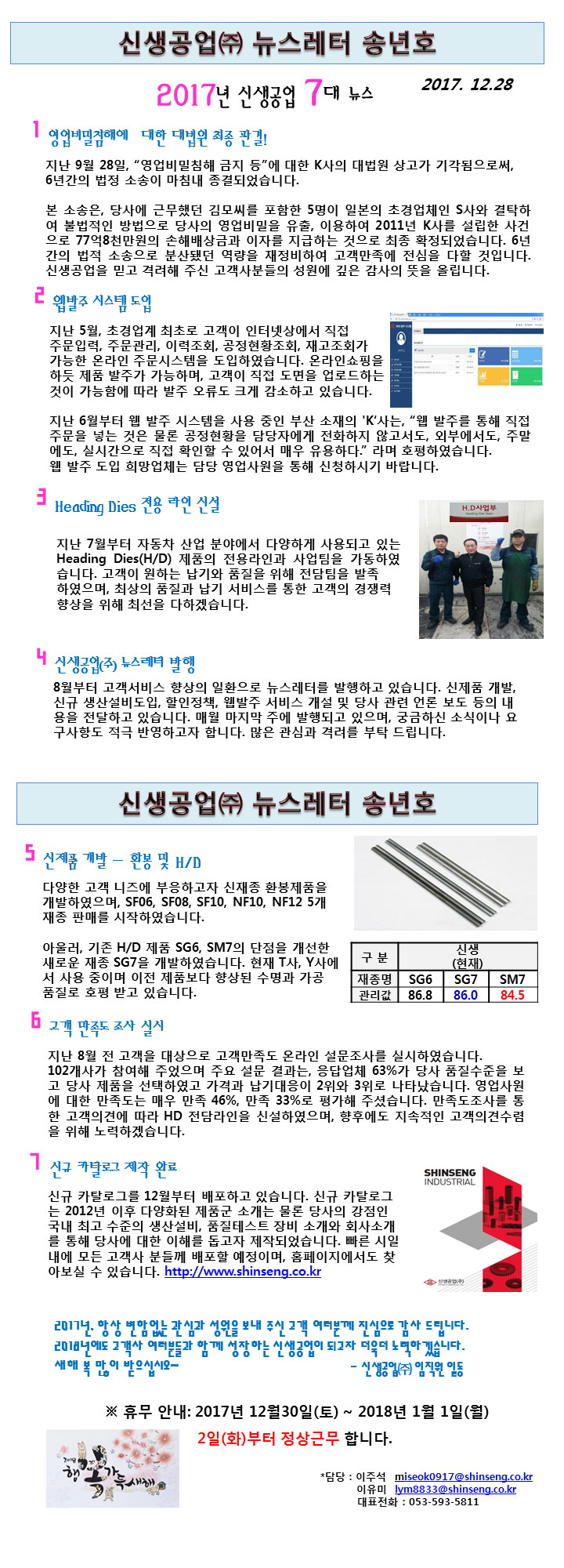 신생공업(주) 뉴스레터 송년호(2017.12.28)